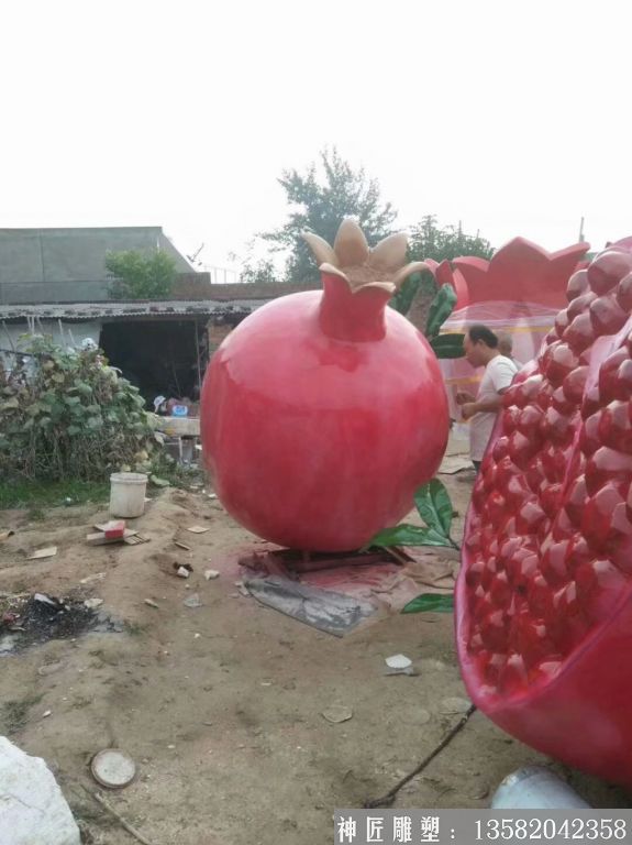 玻璃钢仿真石榴雕塑,水果石榴雕塑,室外逼真石榴雕塑